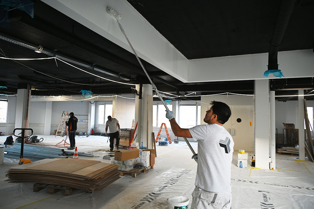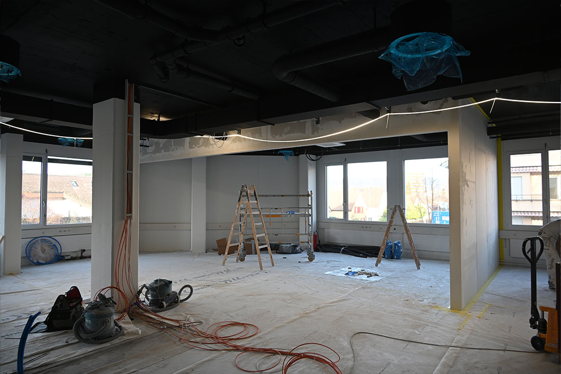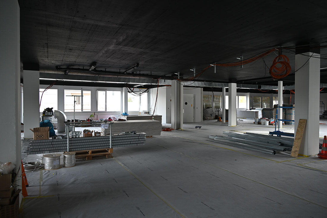 Auch technisch wurde die gesamte Infrastruktur auf den neuesten Stand gebracht. Moderne Elektroinstallationen, ein ausgeklügeltes Beleuchtungskonzept sowie die Arbeiten für die Lüftung, Klima und Sanitär legen die Basis für ein flexibles, komfortables Arbeiten. Hochwertige Bodenbeläge und frische Malerarbeiten runden den Ausbau ab und schaffen ein stimmiges Gesamtbild.
