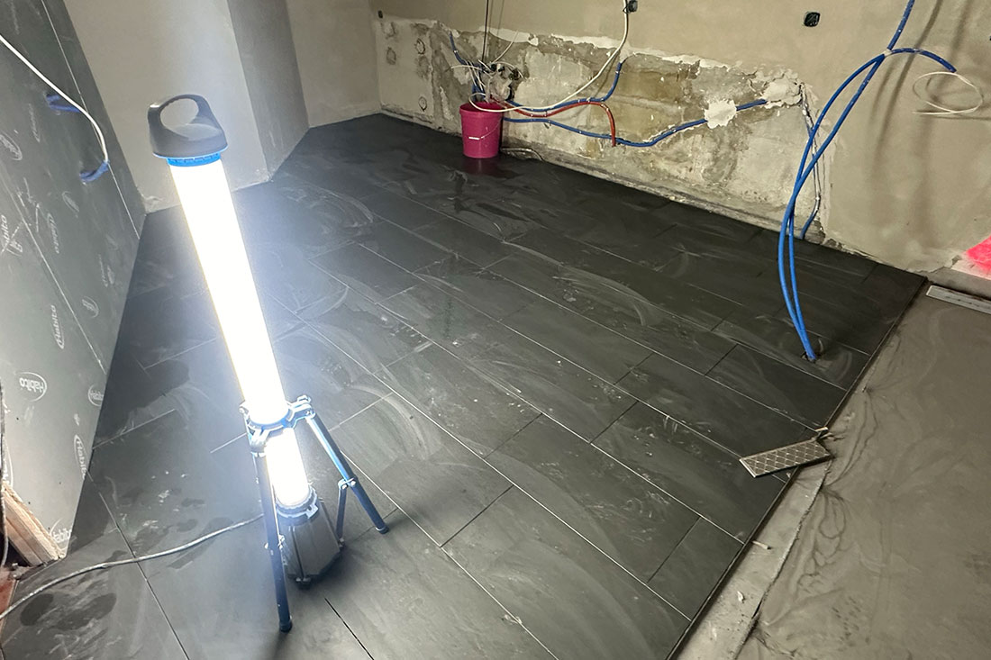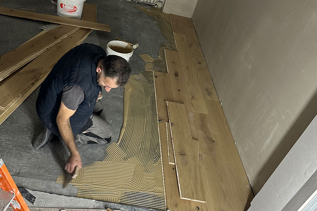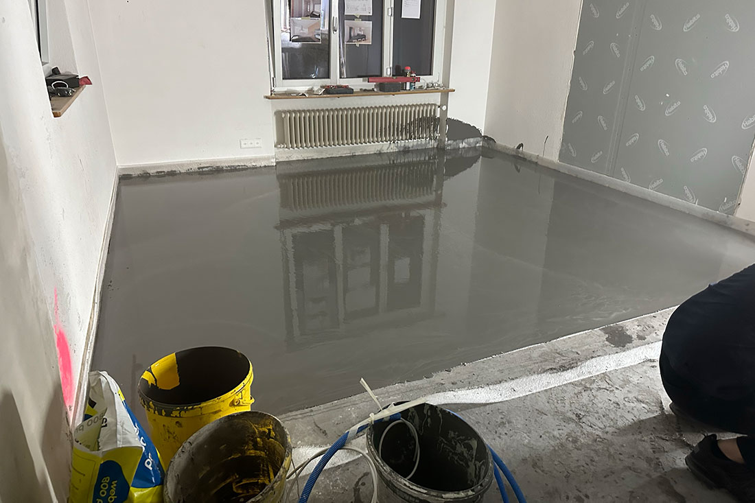 Hochwertige Bodenarbeiten mit Naturstein und rustikalem Eichenparkett